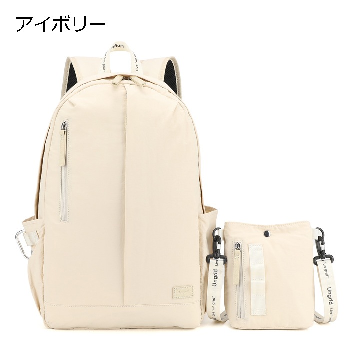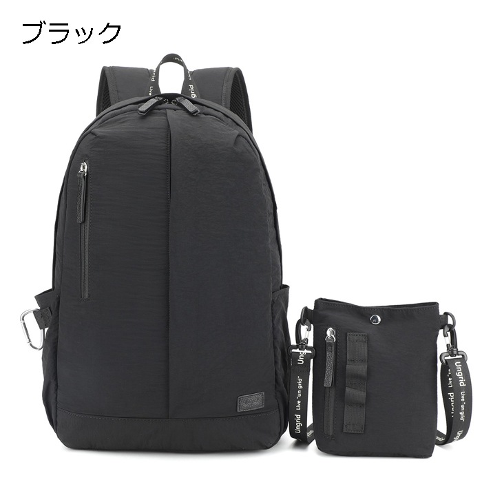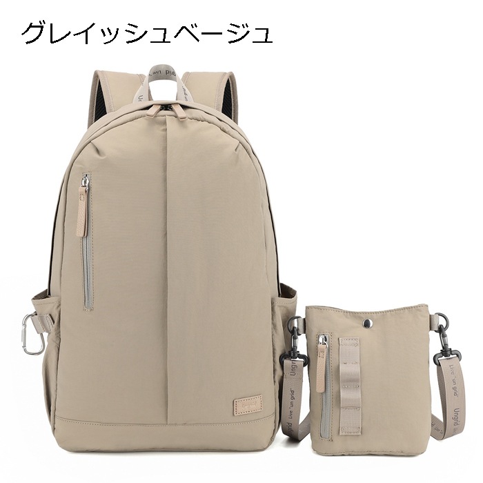アングリッドカラビナ 大容量 軽量 軽い 撥水 ナイロン 多機能 大きめ リュック ショルダーバッグ バックパック ポシェット 2点 セット 旅行 レディース ブランド 通勤 通