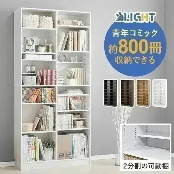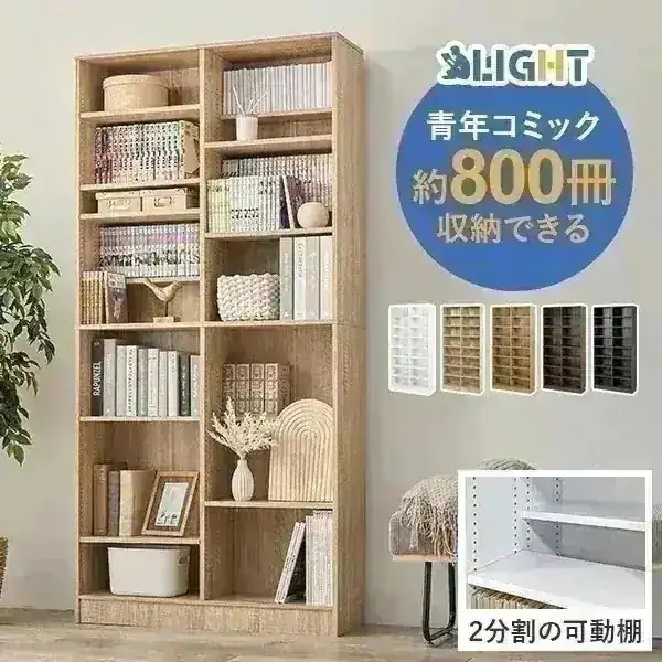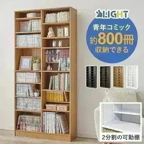沢山入りましたし、棚板を好きに動かせるので色んなサイズの本が入れられます。壁に止められるのも地震対策になって嬉しいです。