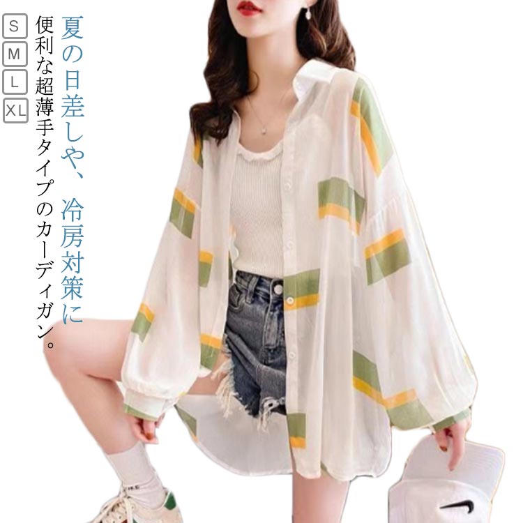 ロングシャツ レディース シャツ ブラウス 春 薄手 サマー アウター UVカット 羽織 オフィス 柄物 トップス 大きサイズ ロング ゆったり 体型カバー 春夏 カーディガン
