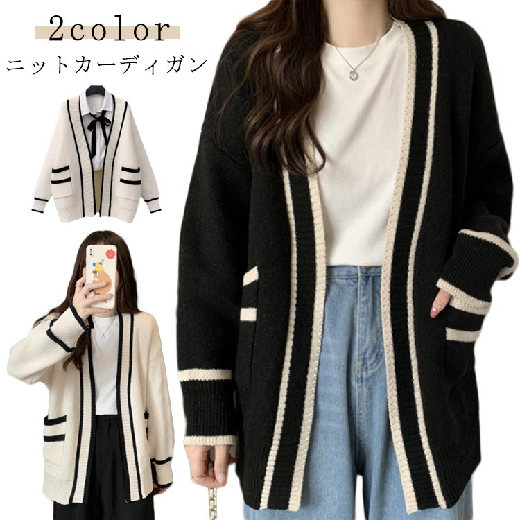 バイカラーカーディガン レディース 長袖 バイカラー カーディガン Vネック 秋冬 コーデ ニットカーディガン おしゃれ トップス ニットカーデ ニット セーター 羽織り 上着 オフィス ドロップショ