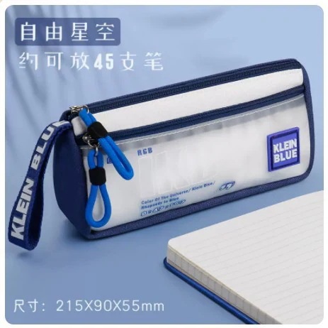 【3日内出荷】 可愛い筆箱 ペン袋青色透明二重ペン袋アイデア学生文具袋大容量ペン袋