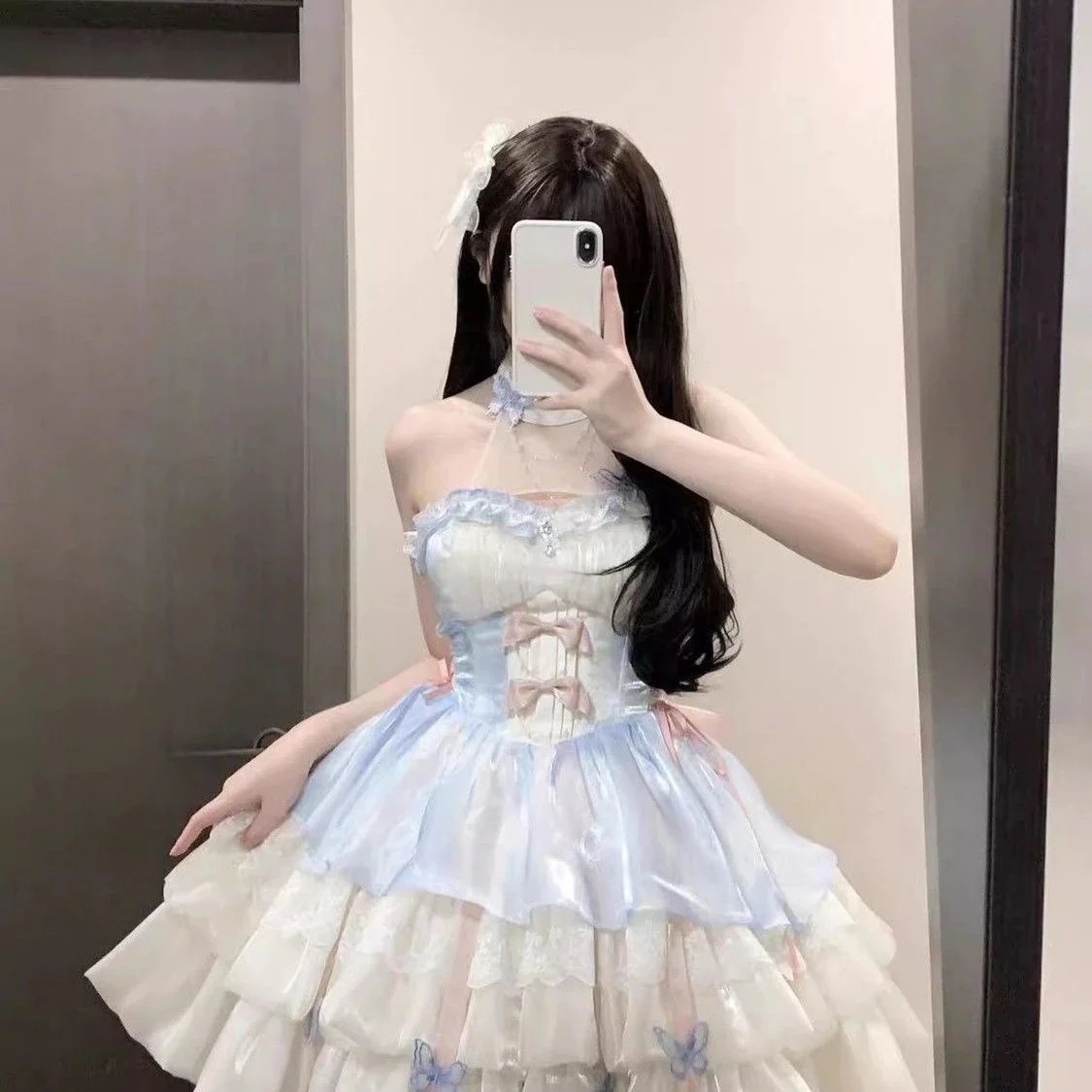 プリンセススタイルピュアラストスタイルホルターネックサスペンダースカートチュチュスカート