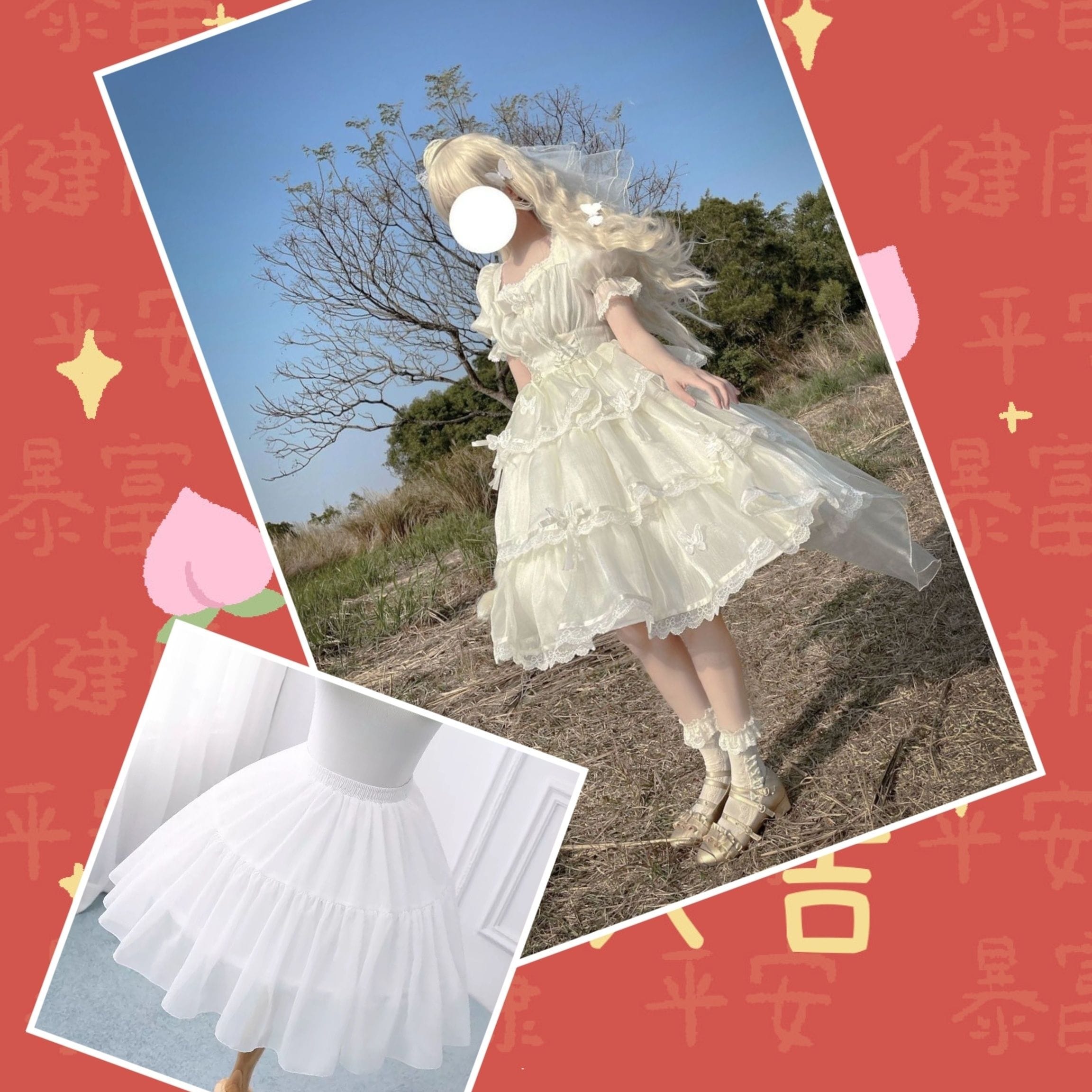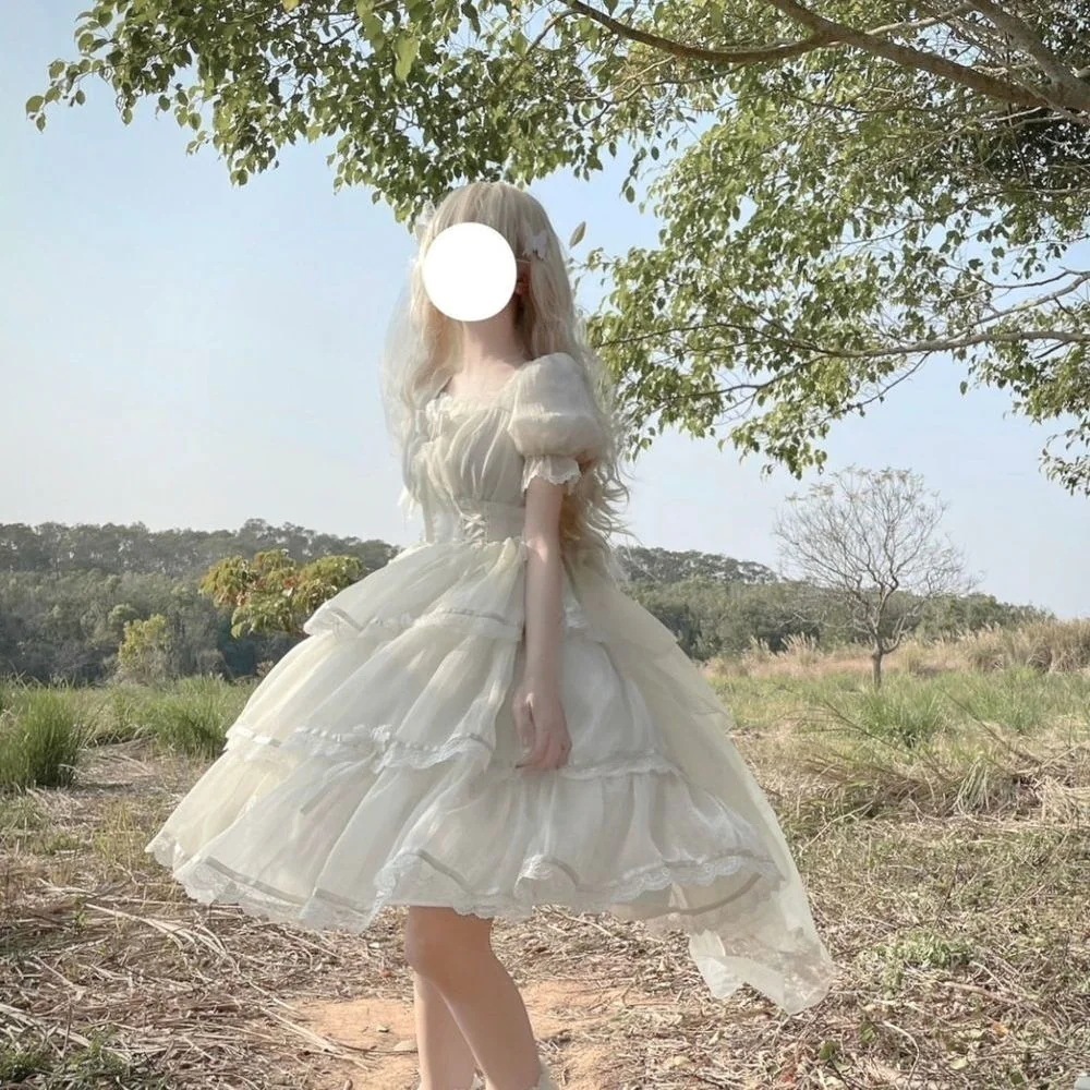 スカート ロリータドレス 半袖op エレガント花柄 ウェディング パフスリーブ 三段 夏