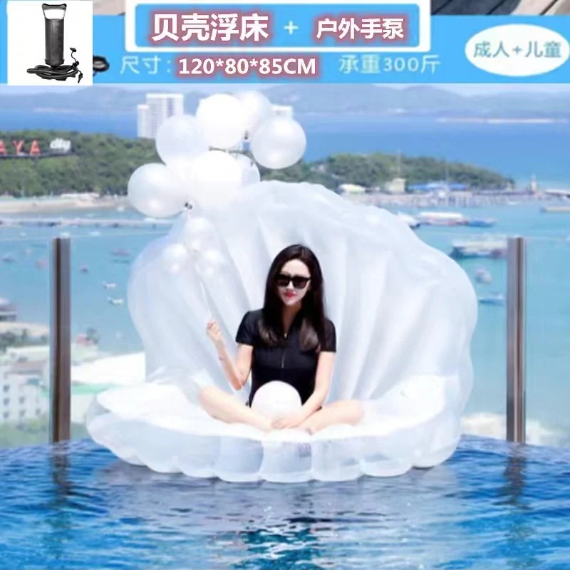 インフレータブルソファ貝殻と真珠の浮き輪大人と女性の写真撮影用アーティファクト水上休暇のおもちゃフローティングベッド
