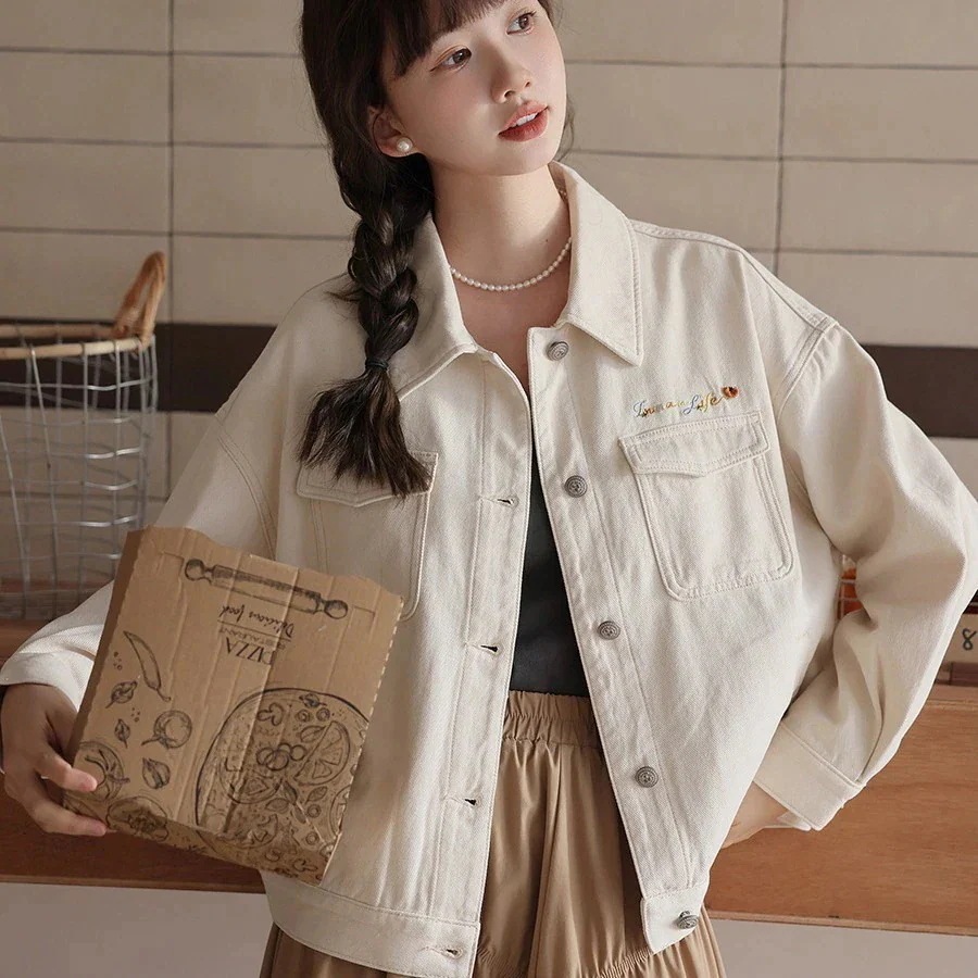 コーデに役立つ!デニムジャケット レディース 白 2026春の新作ゆったりアルファベット刺繍ホワイトワークジャケットショートジャケット 韓国ファッション