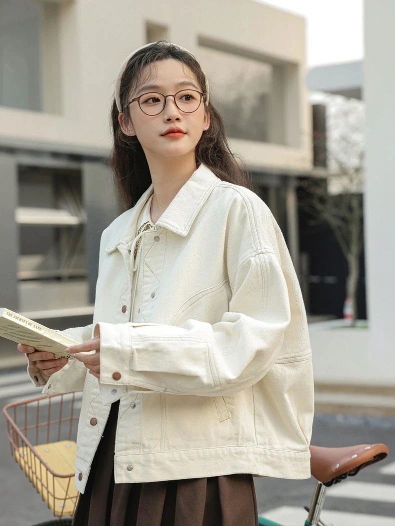 コーデに役立つ!デニムジャケット レディース 2026春の新作 白 ピュアカラーシンプルホワイトデニムジャケットレディースショートジャケット 韓国ファッション
