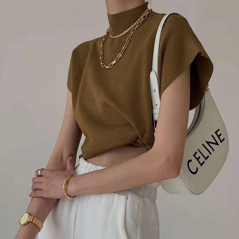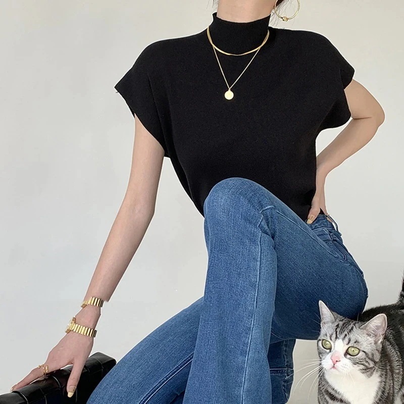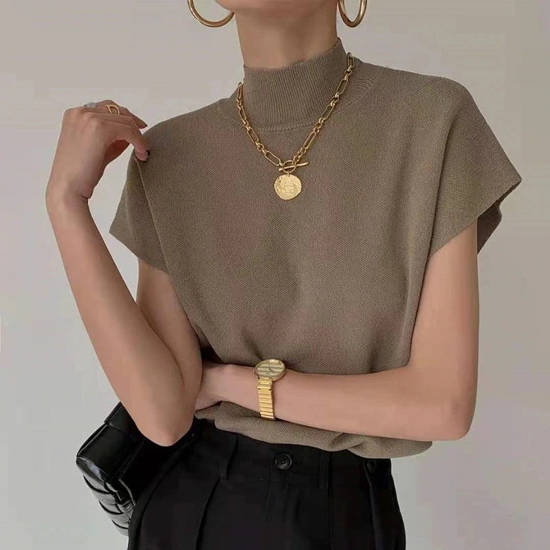 ノースリーブ ニット Tシャツ 夏 新作 ブラウス 2024 おしゃれ 百掛け 無地 トップス