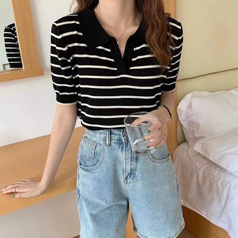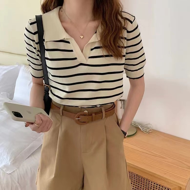 Tシャツコレクション 夏 トップス 韓国 INS ベ-シック ボーダー柄 ニット トップス 夏でも着れる!サマーニット