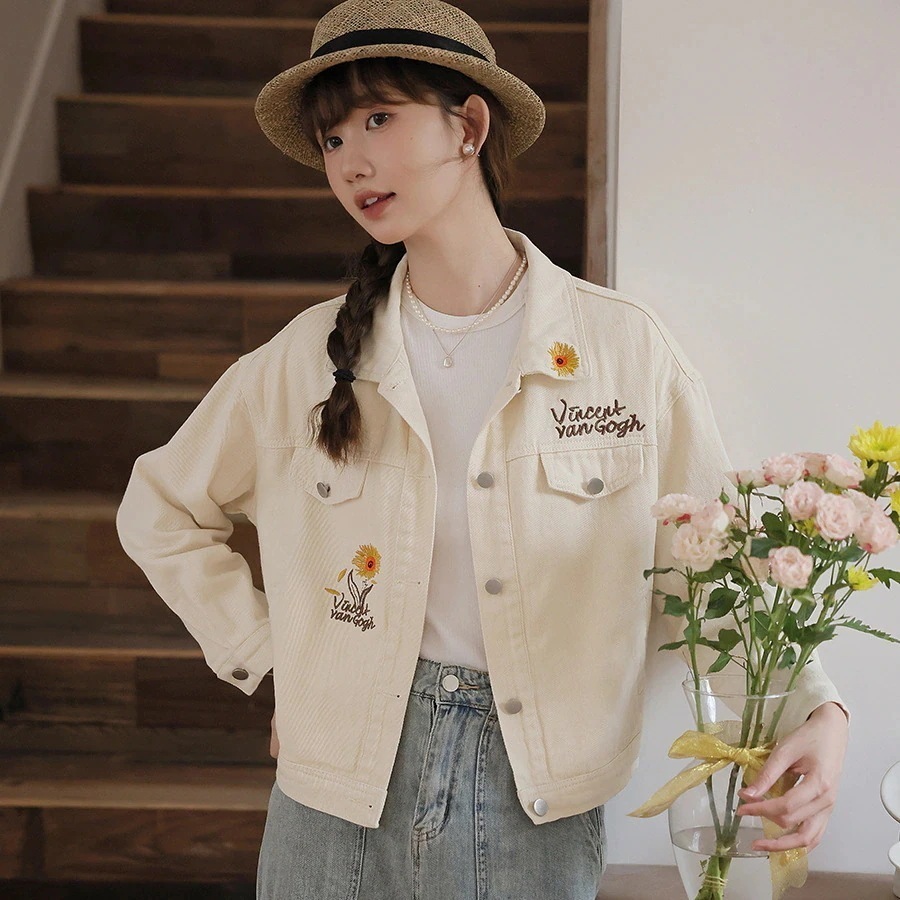 コーデに役立つ!デニムジャケット レディース 2026春の新作甘い刺繍白ショートデニムコート女刺繍デニム 韓国ファッション
