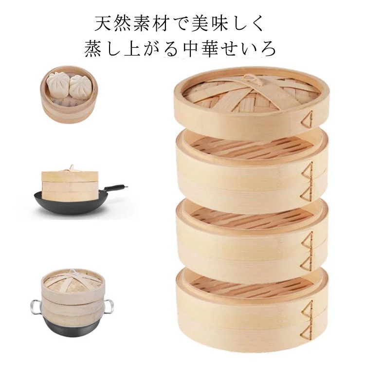 4点セット せいろフタ1 せいろ身3 せいろ 蒸篭 中華せいろ 竹 セイロ 蒸し かご 天然竹 蒸籠 中華セイロ 蒸し器 点心 飲茶 小籠包 焼売 肉まん シュウマイ 蒸し野菜