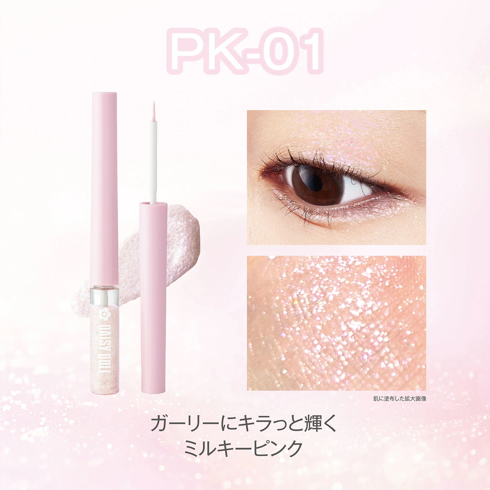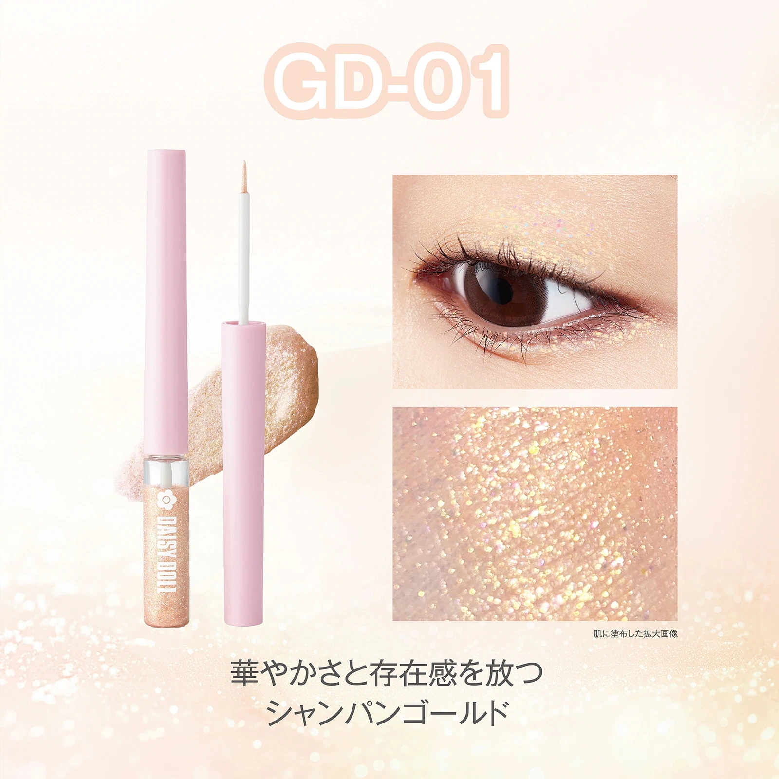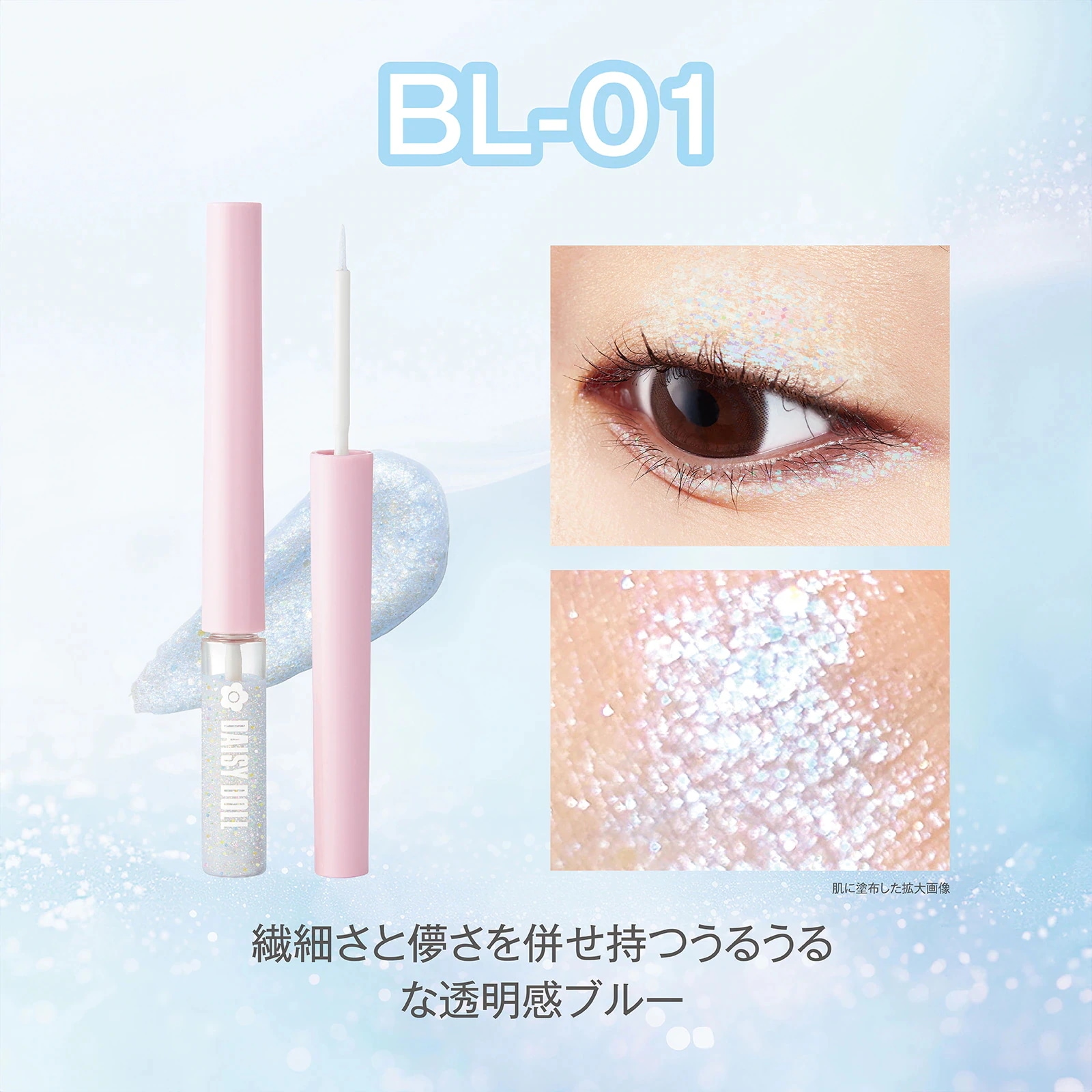 細目くて小さい筆で書きやすいです。たまに大きめのラメが出て来てアクセントになって可愛い。ブルーの色がブルベにピッタリで最高です。乾いた後擦るとポロッと取れてしまうので目をかくのは禁物ですね。擦る可能性も考えて持ち歩くのが良いと思います。