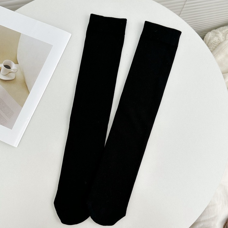 ミトゥ フリース ふくらはぎソックス レディース 秋冬 厚手 あったか レトロ スリム Jk ストライプ ミッドチューブ ロングソックス 白黒