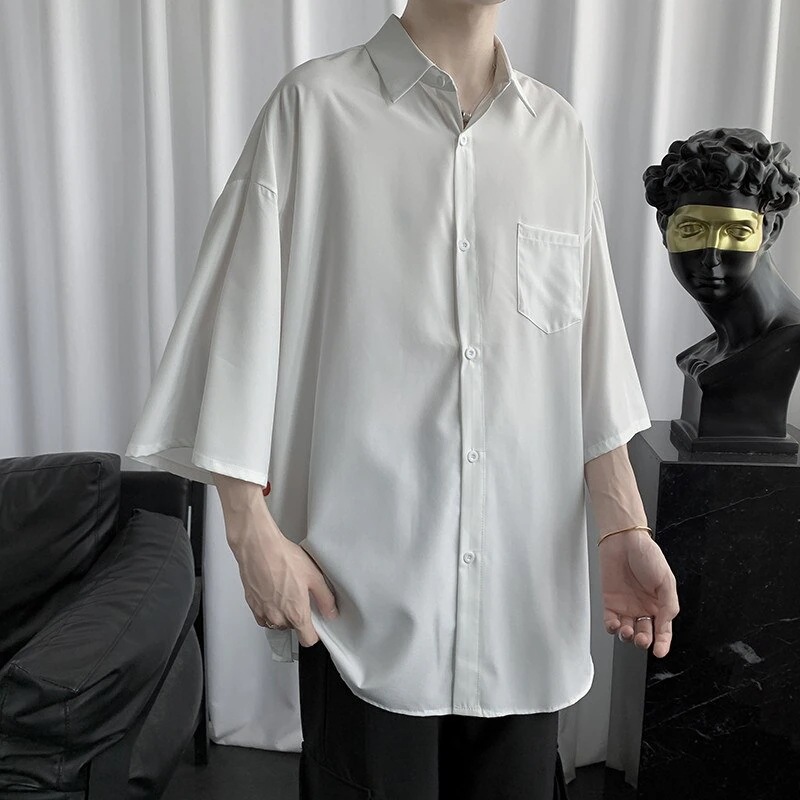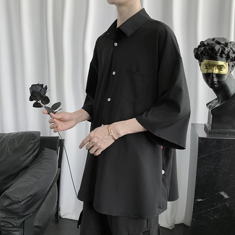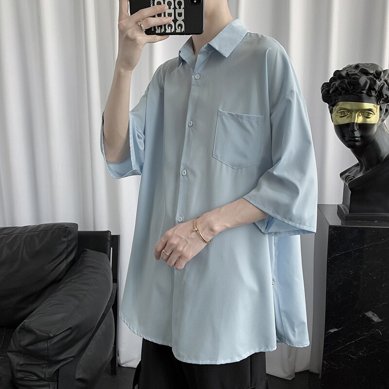 半袖シャツメンズのファッションブランドデザインセンスルーズトレンドスタイルイン七分袖サイドブ