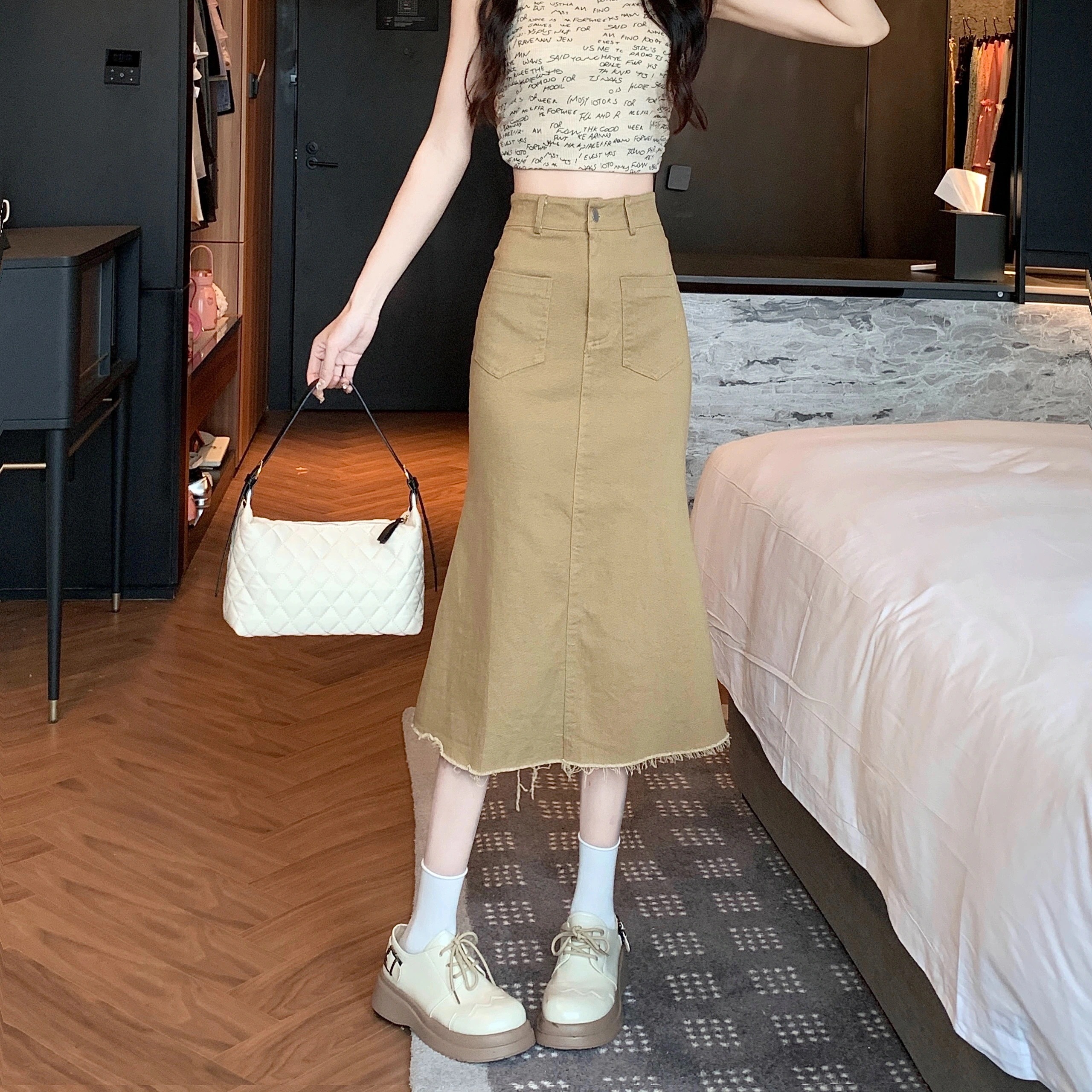 フィッシュテールデニムスカートレディース2024新しい夏の小さなハイウエストロングヒップスカート