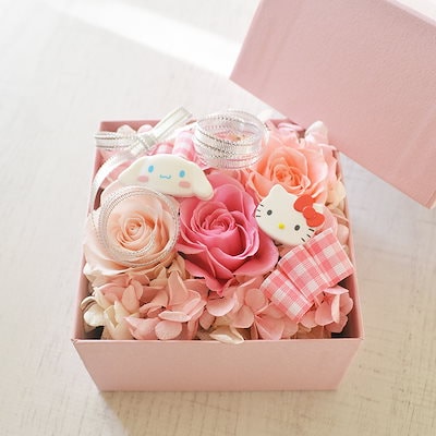 ボックスフラワー SANRIO ハローキティ&シナモンロール プリザーブドフラワー 贈り物 プレゼント フラワーギフト 花 誕生日 結婚祝い 結婚記念日 母の日
