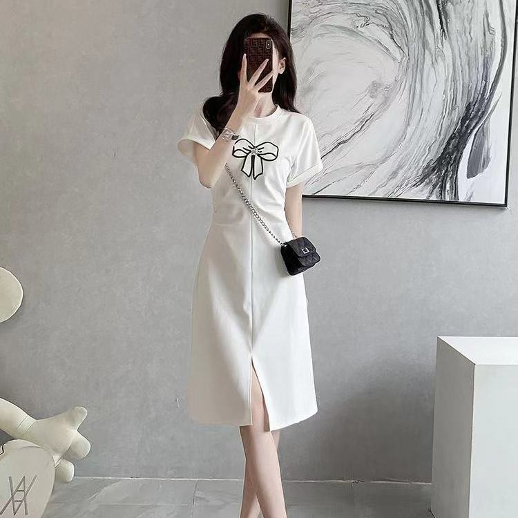ワンピース 2024 夏 新作 黒のワンピースフォークTシャツスカート 着痩せ 百掛け 韓国ファッション