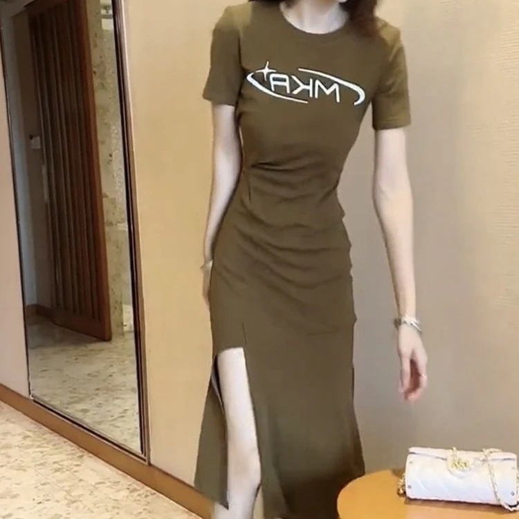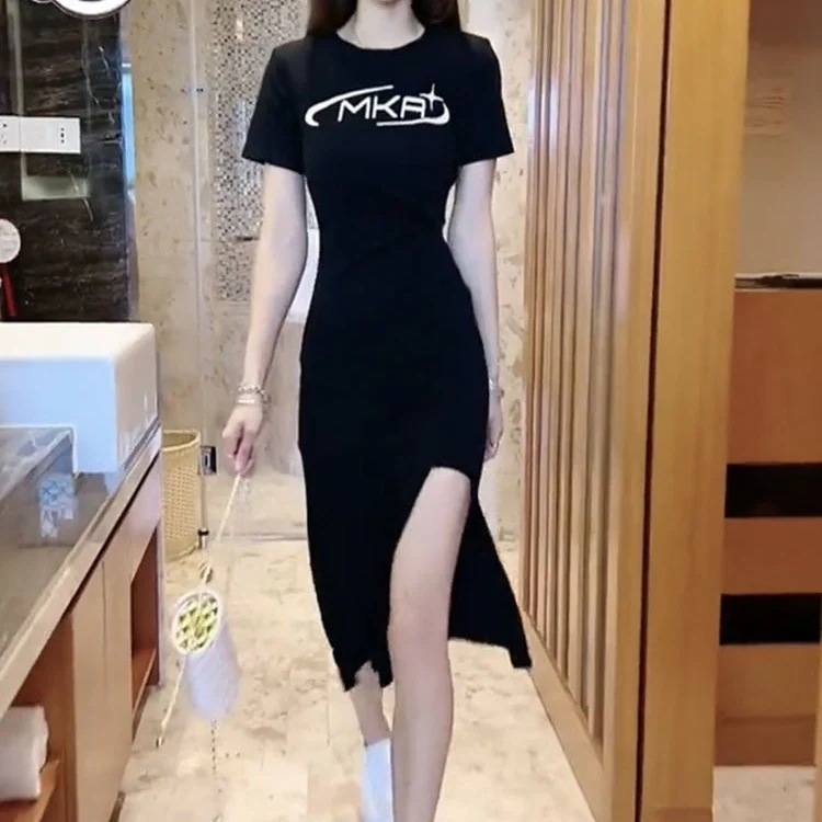 ワンピース 2024 夏 新作 不規則開叉半袖ワンピース 着痩せ 百掛け 韓国ファッション