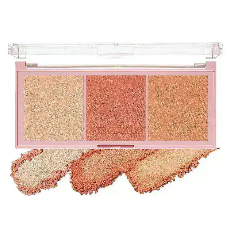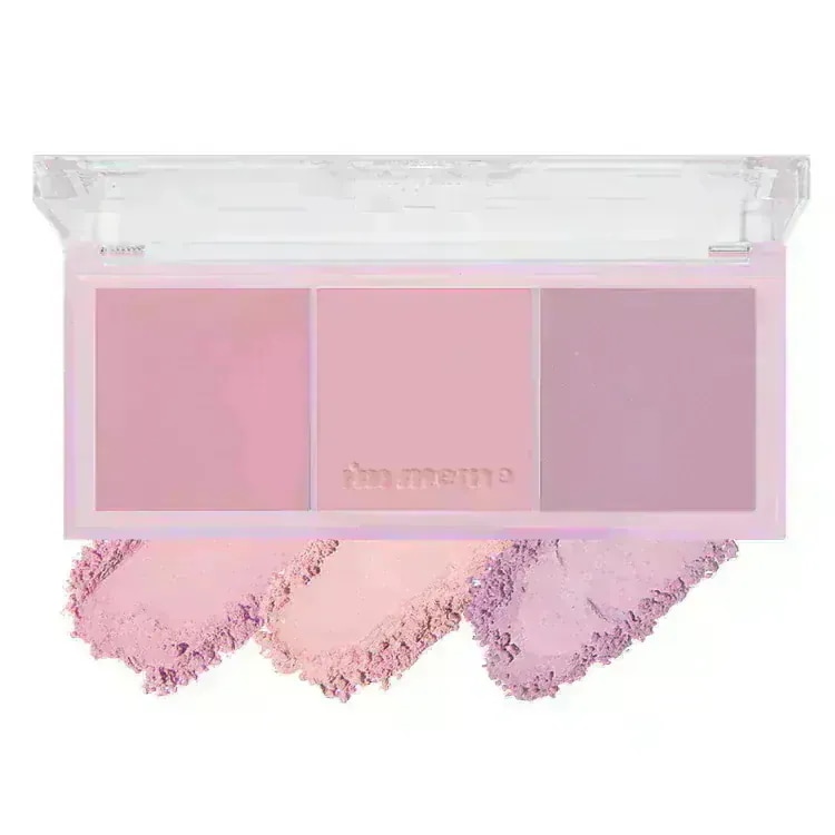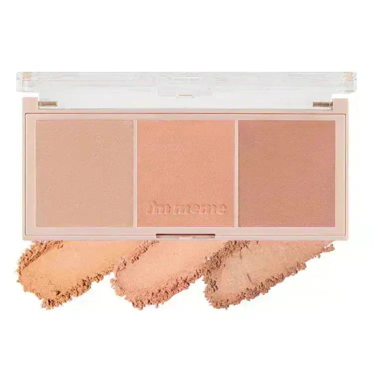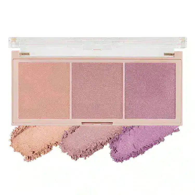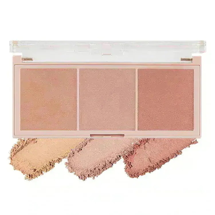 真ん中は少しピンク味もあって可愛らしい雰囲気も作れます。程よいふんわり陰影でアイメイクにも使えるし買って損なし -