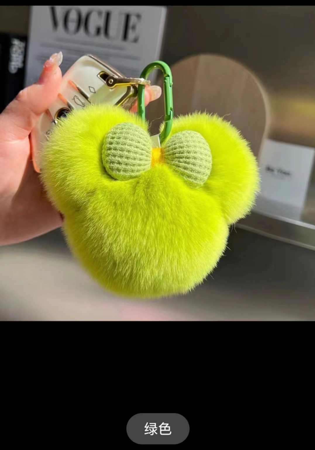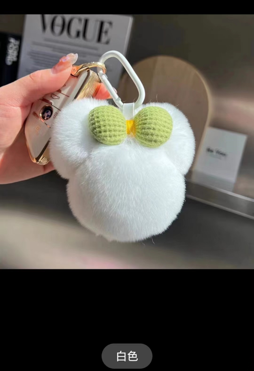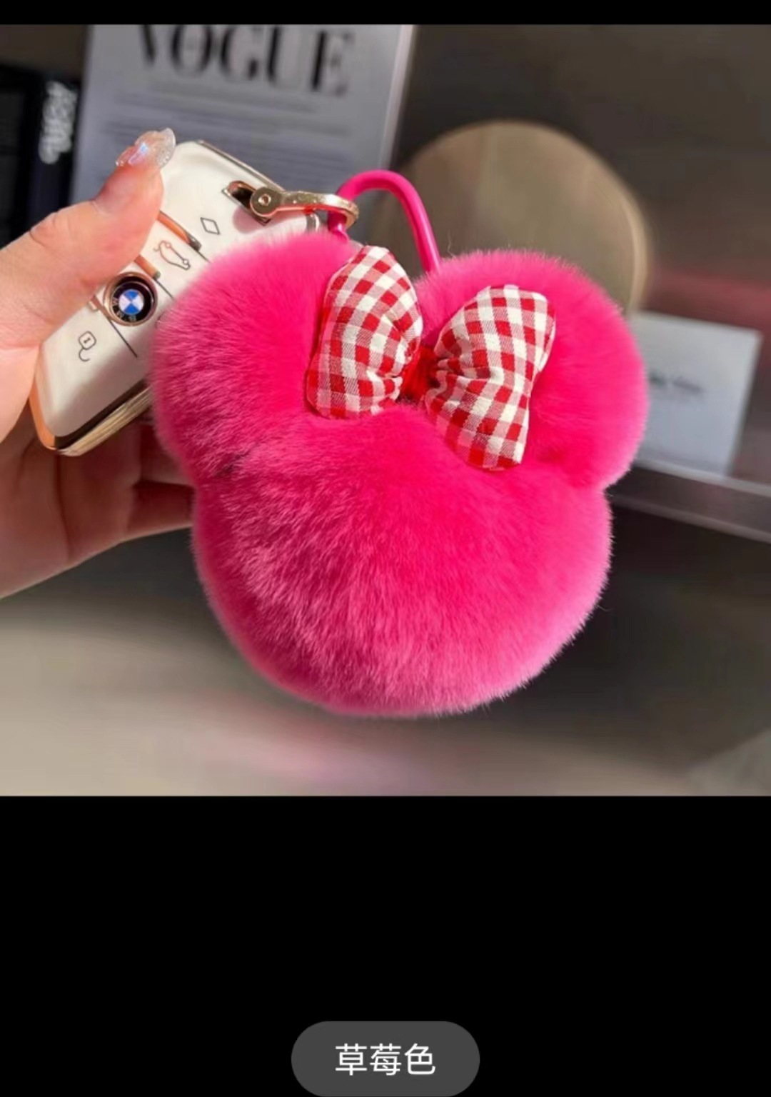 大好評 かわいいレッキスラビットファーリボンミッキーヘッド車キーホルダーペンダントぬいぐるみ人形オーナメントギフト