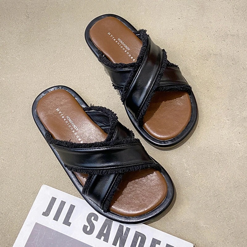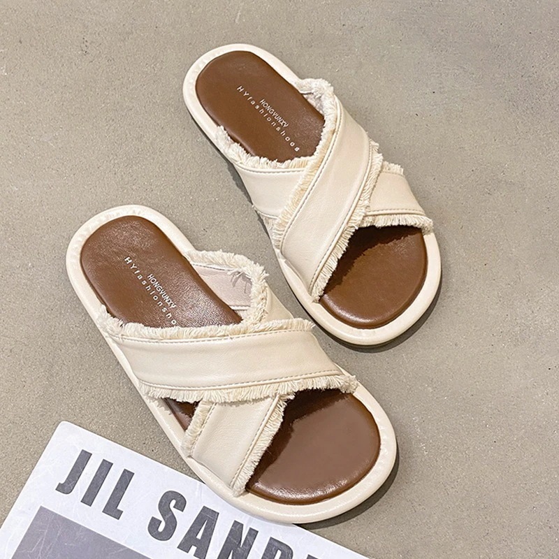 フェアリースタイルスリッパ女性用2024新作アウター夏ソフトフラットビーチクロスドラッグスカート付きフレンチスタイルお出かけサンダル