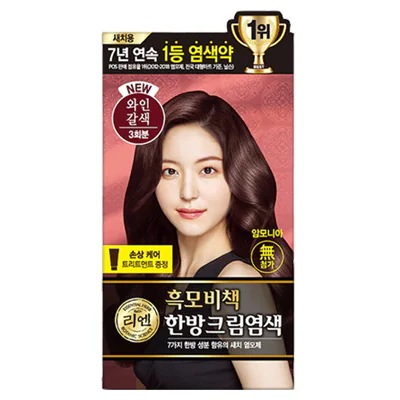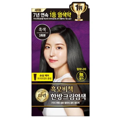 安定のリエン、黒色。リピ買いです。縮毛矯正をしていますが、美容師さんからも傷みが少ないと褒めて頂きました。この漆黒の色味は韓国製でもリエンが抜群だと思います。トリートメントも私の最近のお気に入り、プロポリストリートメントが入っていて嬉しいです。