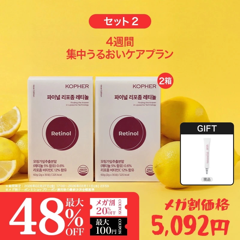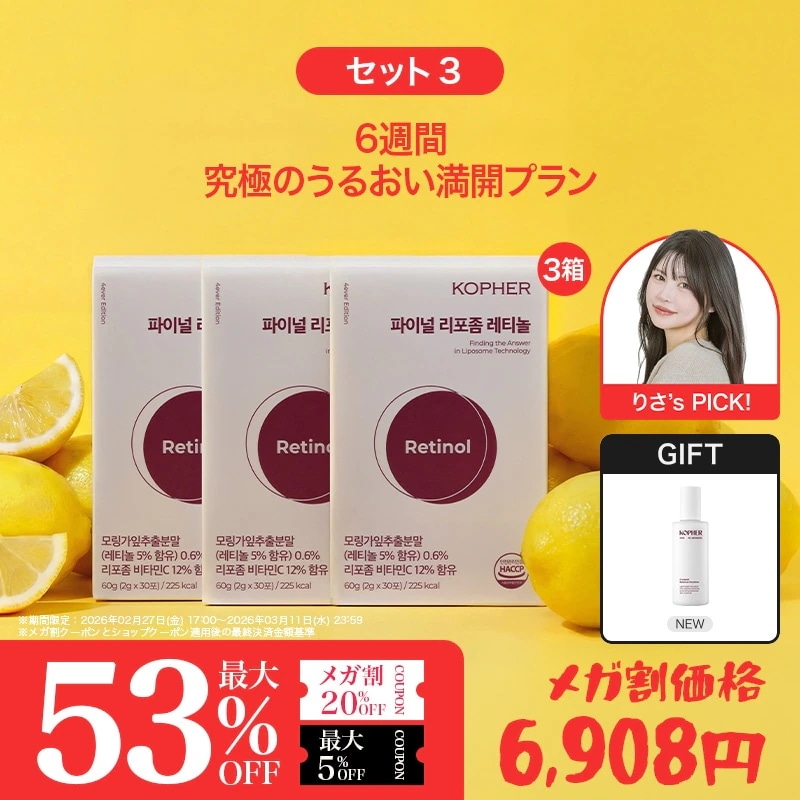 5 5kas*** 2026.03.04 選択:【セット1】飲むレチノール(2箱 60包)+LIVE限定GIFTオプション : 選択:【セット1】飲むレチノール(2箱/60包)+LIVE限定GIFT 肌タイプ : 混合肌 肌トーン : ブルベ 肌の悩み : 乾燥, しわ・たるみ, シミ