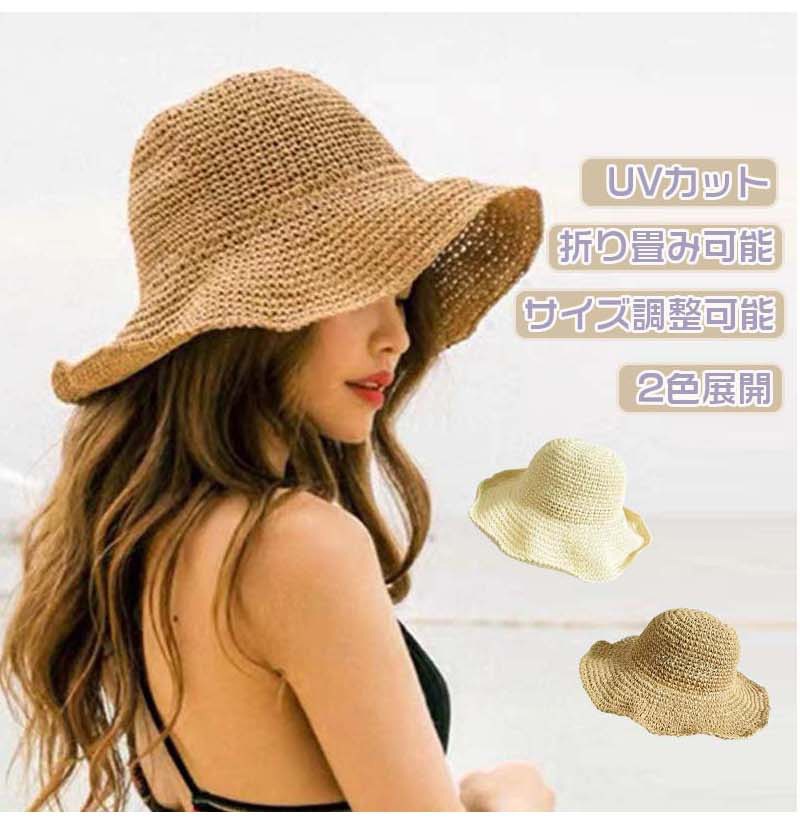 麦わら帽子 レディース つば広 ストローハット UVカット 帽子 防紫外線 日焼け対策 麦わら 折り