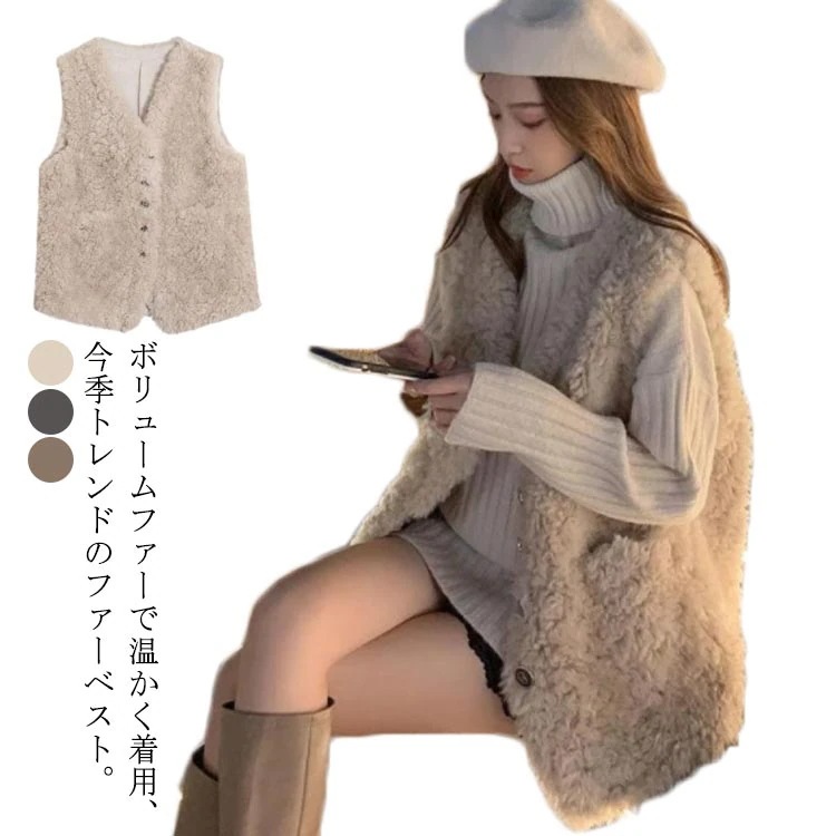 ボリューム フェイクファーベスト ベスト レディース ファーベスト トップス エコファー ライトアウター ボアベスト ジャケット ジレ レイヤード 重ね着 ショート丈 羽織 秋 冬 秋冬 ブラウン グ
