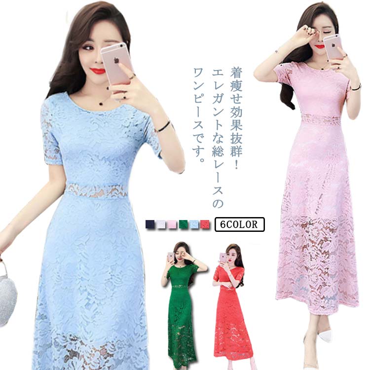 半袖 レディースワンピース 春夏 お呼ばれ レディース ワンピース パーティー レースワンピース レディース シースルー レエレガント フェミニン セクシー フラワー 総レース