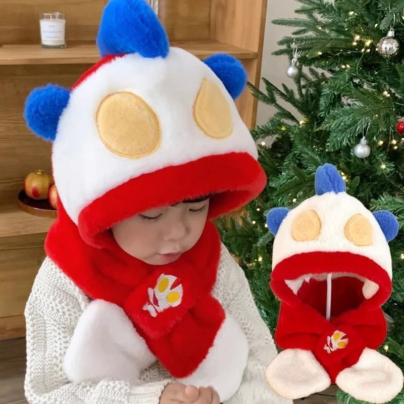 ウルトラマフラー一体秋冬厚手子供男の子ニット毛糸帽子保温かわいい潮赤ちゃん帽子