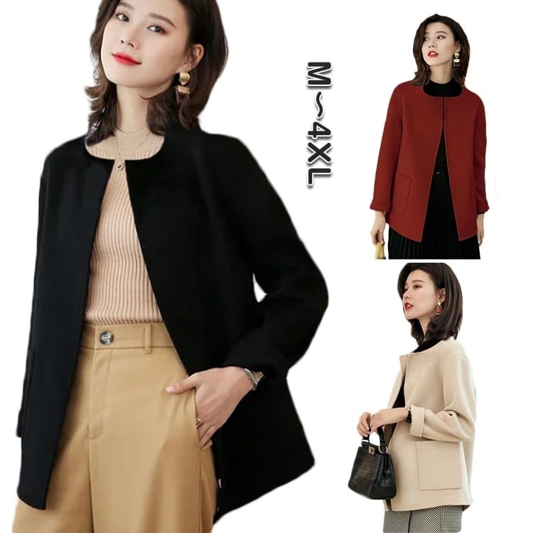 コート レディース 春 ノーカラーコート アウター レディース コート ショート ノーカラコート 起毛 シンプル レディース ジャケットアウター ブラック 卒業式 入学式 ギフト