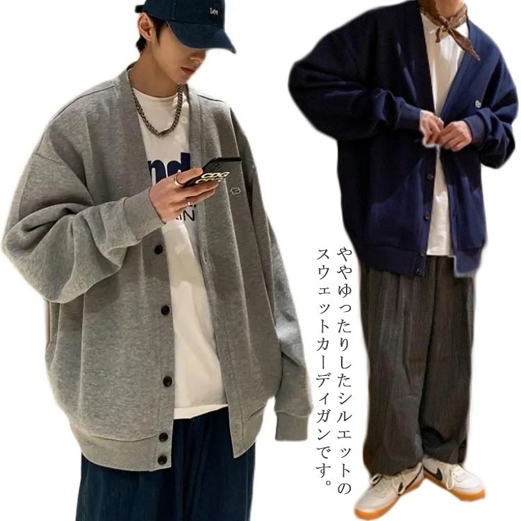 カーディガン スウェット 前開き スウェットカーディガン 長袖 ジャケット アウター レディース ユニセックス 男女兼用 ゆったり 春 秋 カジュアル 大きいサイズ ペアルック ブル