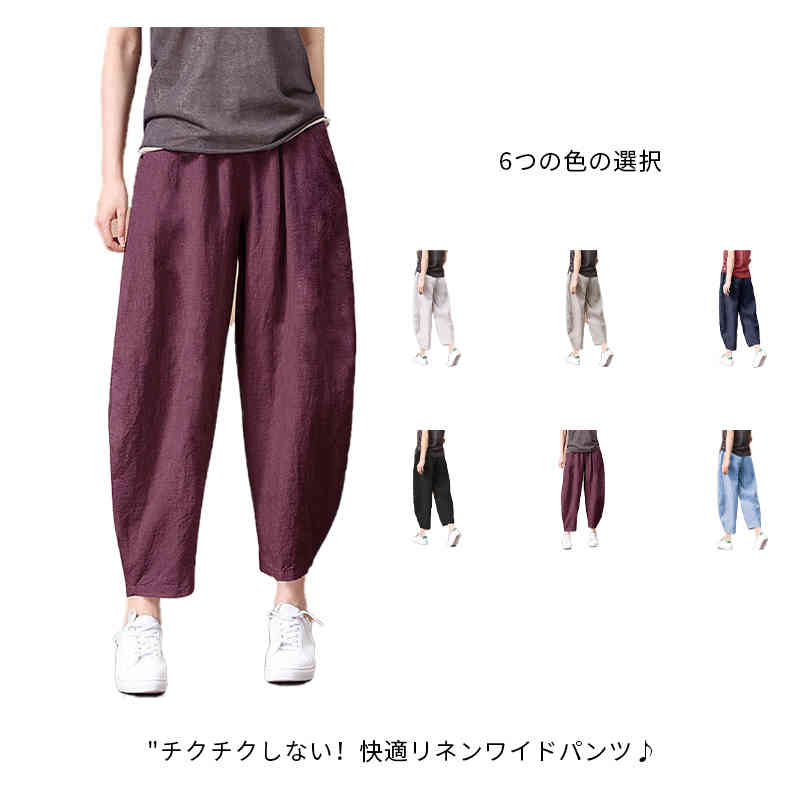 パンツ 綿麻 ズボン 麻 リネン 春 春物 レディース 通勤 無地 テーパード ロング丈 9分丈 大きいサイズ 体型カバー ゆったり ボトムス 大きいサイズ 美脚 ゆったり 30代 40代