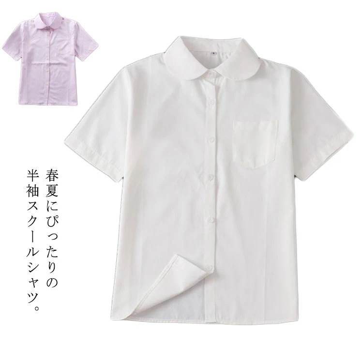 シャツ 丸襟 半袖 ブラウス 制服 透けない ホワイト 学生服 シャツ 高校生 中学生 女の子 半袖シャツ 白 ピンク 通学 丸衿