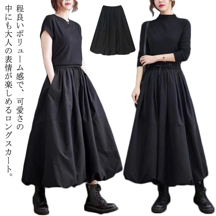 バルーン ロング レディース 黒 大きいサイズ フレア フレア ボトムス 春 秋 冬 ロング ミモレ丈 ファッション シンプル きれいめ カジュアル 大人 可愛い ウ