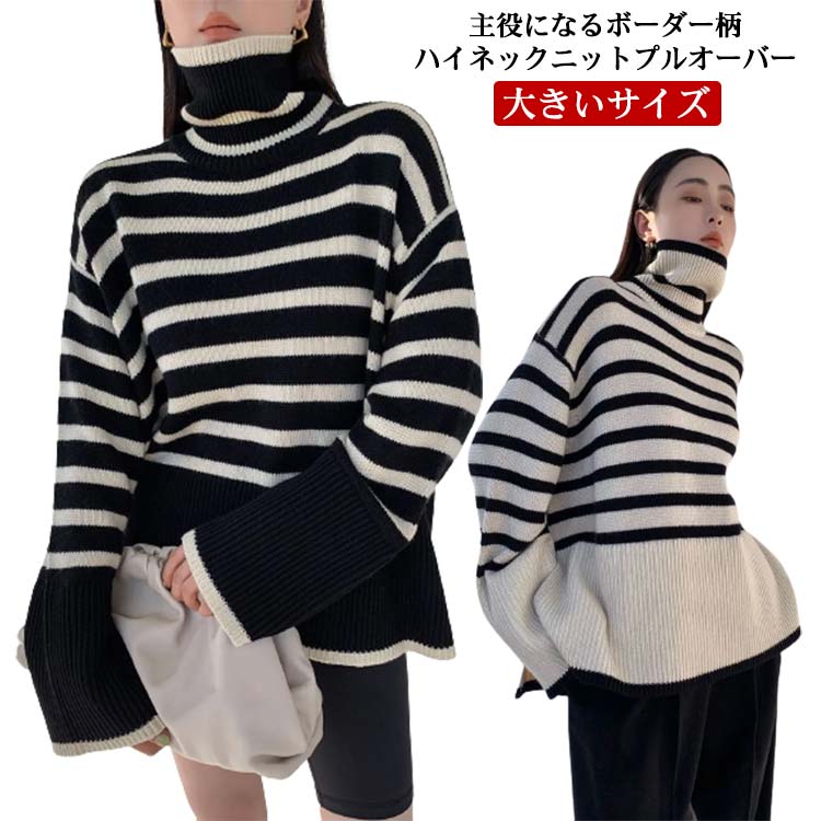 ボーダー ハイネック セーター レディース 長袖 春 プルオーバー オーバーサイズ トップス ボーダー柄 タートルネック かわいい ゆったり 大きいサイズ やわらか 配 きれい