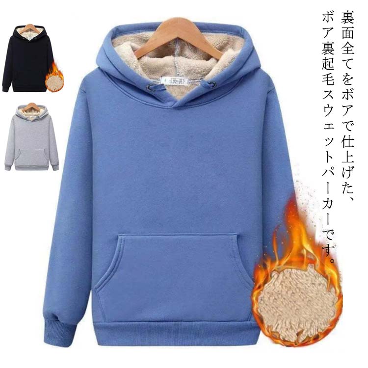 裏ボア 裏起毛 秋冬 厚手 プルオーバー フード付き 暖かい 無地 スウェット 超暖 おしゃれ 防寒 長袖 アウター 厚手 トップス 大きいサイズ ゆったり フーディー あっ