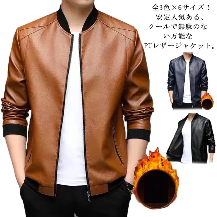 リブ襟 レザージャケット ジャケット PU フェイクレザー ブルゾン アウター 春 秋 ジップアップ ジャケット 防風 防寒 大きサイズ 秋 冬 秋冬物 ブラック ブラウン ブルー