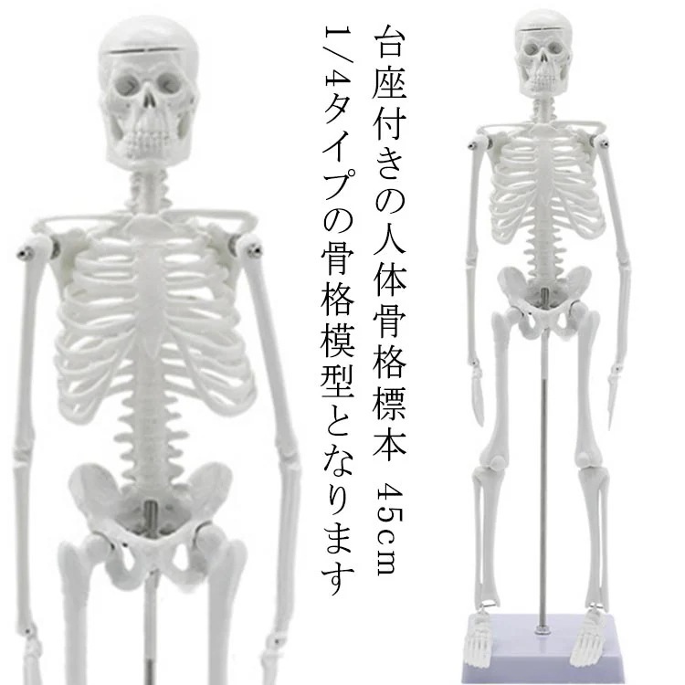 人体模型 45cm 人体骨格模型 骨格標本 稼動 直立 スタンド 教材 45cm 1/4 モデル 骨 骨格 模型 骸骨 フィギュア 全身骨格模型 人体模型おもちゃ ホワイト 台座付き