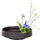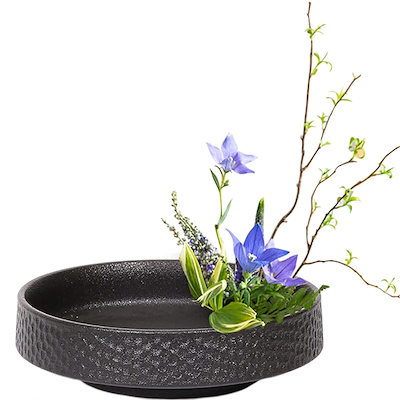 YUYAKESHI花器 華道 生け花用 水盤 花瓶 陶器 挿花 フラワーベース フラワーアレンジメント 和室 卓上 プレート 小原流 剣山付(ブラックハンマー紋18CM)