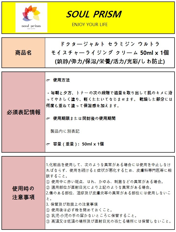 Dr.Jart+セラミジン ウルトラ モイスチャーライジング クリーム 50ml x 1個 (鎮静/弾力/保湿/栄養/活力/光彩/しわ防止)