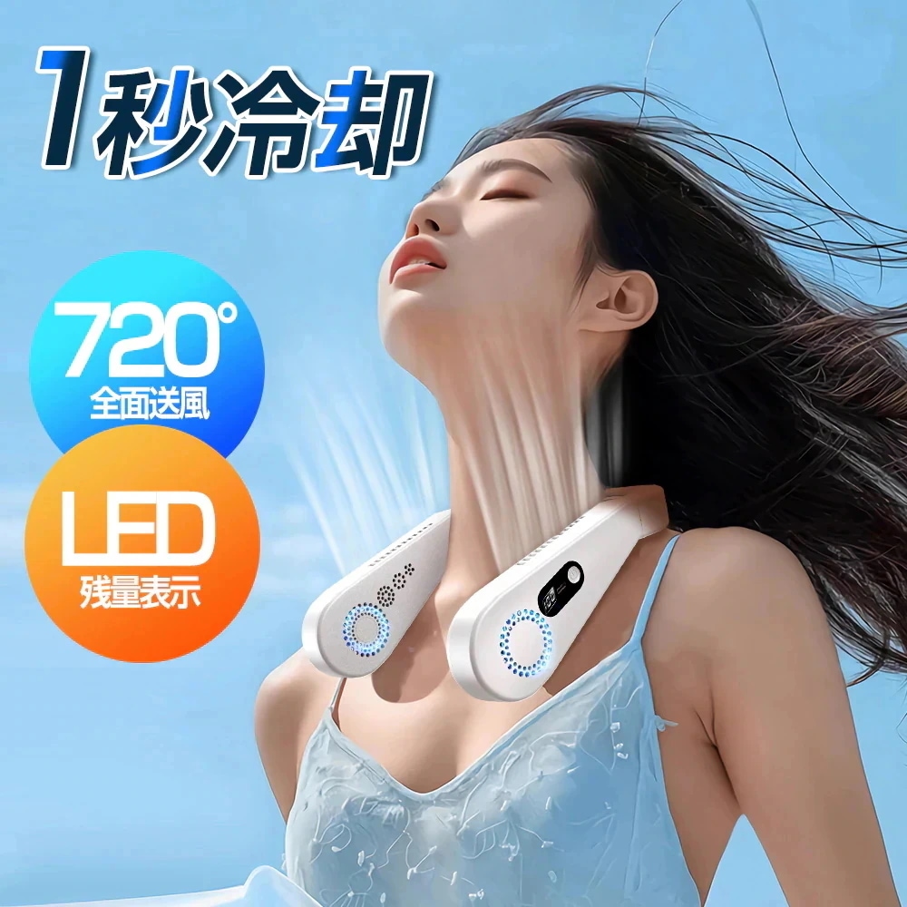 初めてこういう肩掛け扇風機を購入しました。風向きが変えられるところはよい点ですが、両端を回転させて角度を変えるタイプで、首にかけて手を離すとどの角度でもちょうどいいところに風が来なくてちょっともどかしかったです。手が空く時は手で持って顔面に風を当てています。