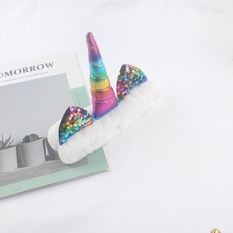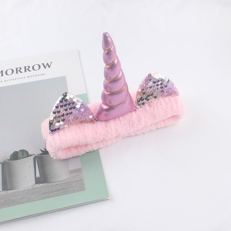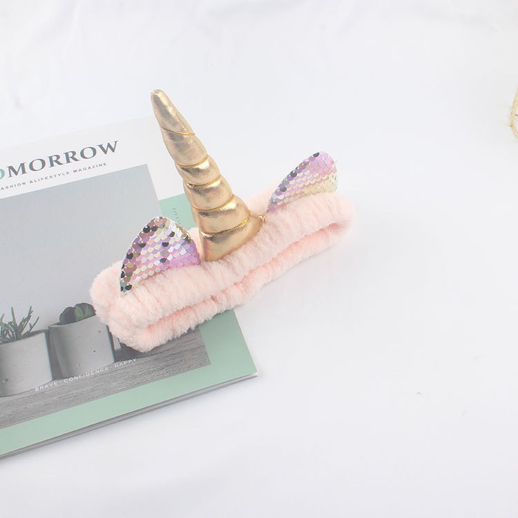 ユニコーンヘアバンド女性用モコモコ洗顔カチューシャかわいいキャラクタークリスマスヘアアクセパックヘアバンド