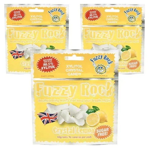 Fuzzy RockSUGAR FREE キシリトール クリスタルキャンディー レモンの香り 40g x 3個