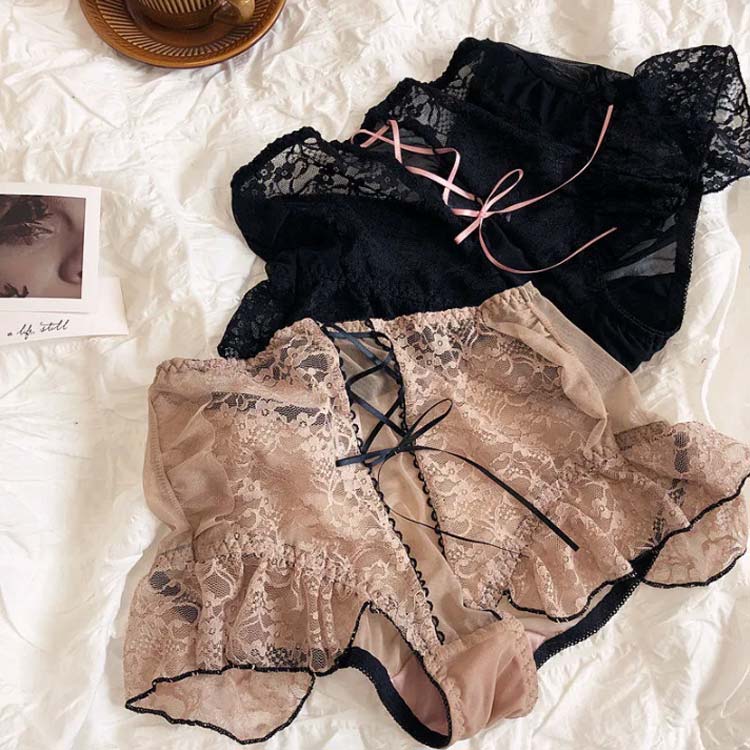 フリルレースショーツリラックスフリルショーツ下着単品ショーツショーツパンティーレディースレースランジェリー締め付けないかわいいフレア響きにくいリボン