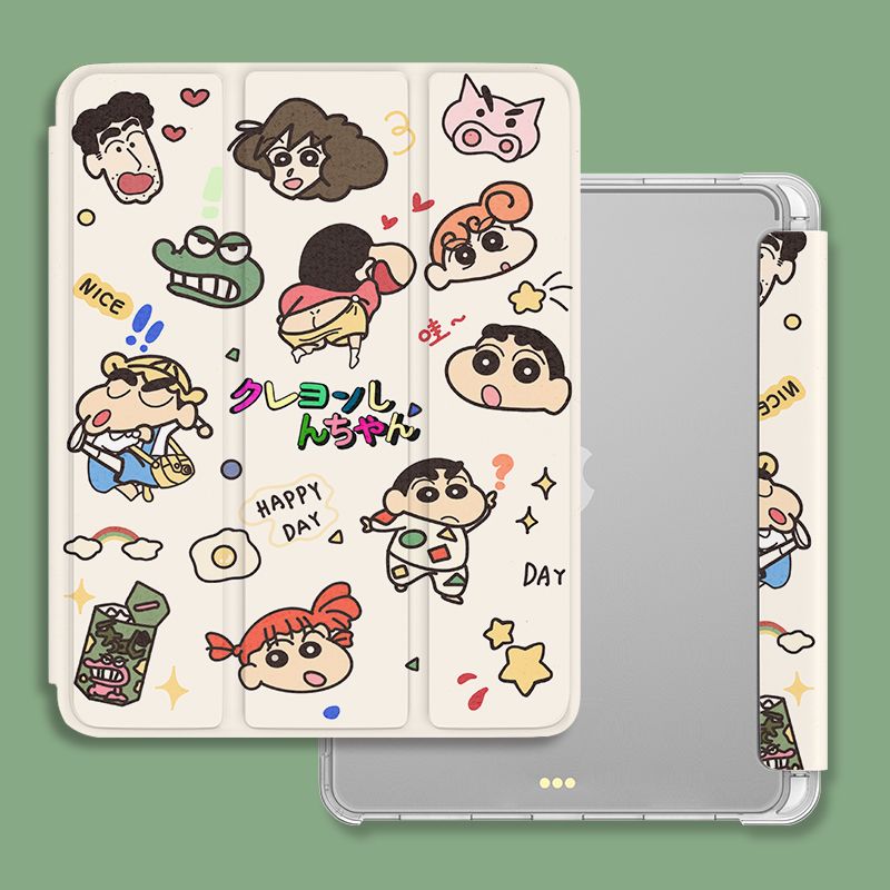 【送料無料】Ipad air 5保護カバーかわいいしんちゃんmini 6ペン溝付き8/9代シリコン9.7三つ折りpro第十代ケース