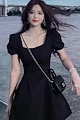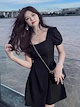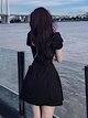 ヘップバーンスタイルリトルブラックドレス女性のための夏の新しいフレンチレトロスクエアカラーミッドレングスパフスリーブドレスV59