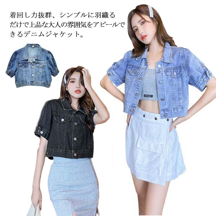 デニムジャケット レディース Gジャン ショート丈 半袖 夏用 無地 前開き 肌触りがいい