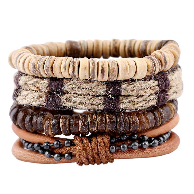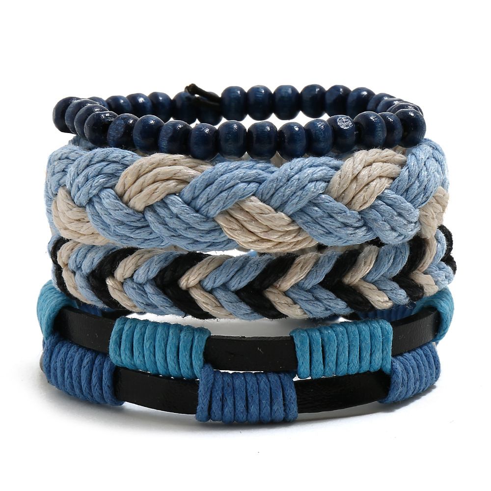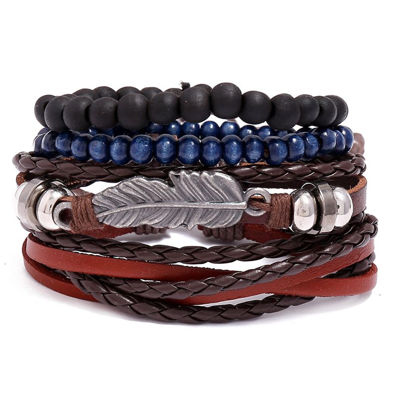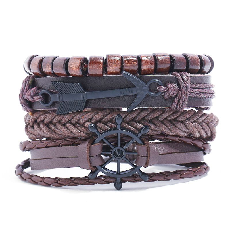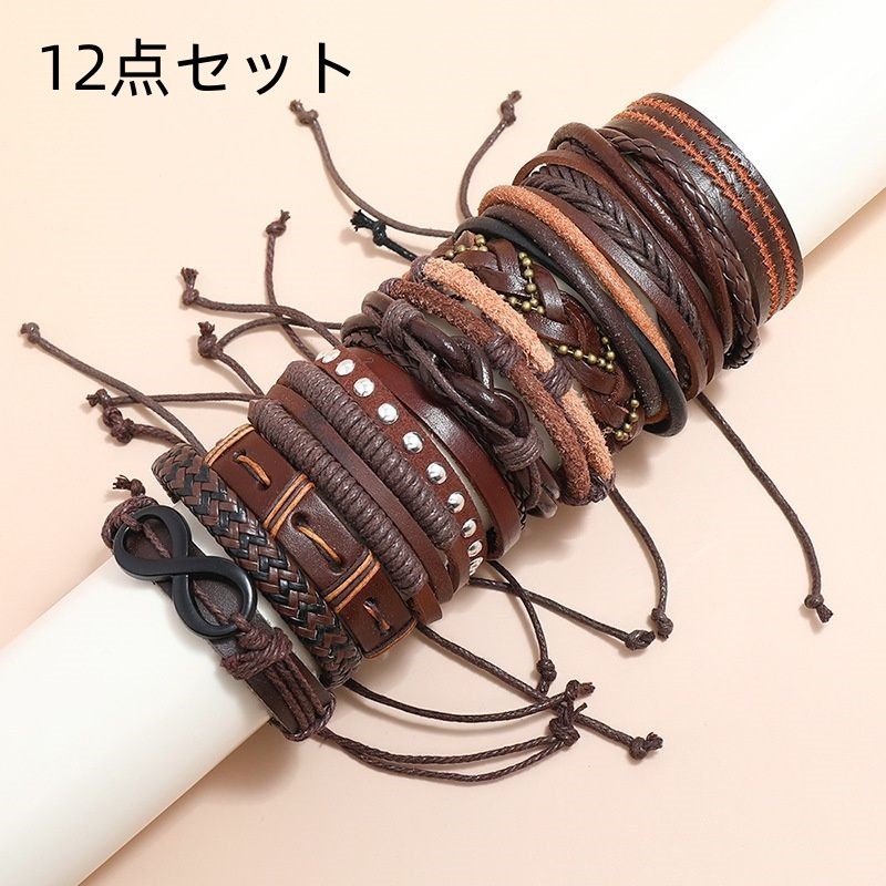 ブレスレット 腕輪 欧米風 シンプル 男女兼用 ブレス パンク 手綱を編み セット 調節可能 レトロなブレスレット 学生 組み合わせスーツ 皮ひも