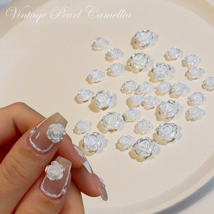 ツバキ【急速出荷】ツバキの花 椿つばき パール オーロラ 透明感 ネイル フラワー パーツ ジェルネイル ネイルアート デコパーツ ツバキ 10粒入り